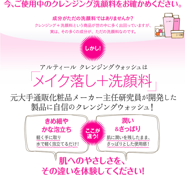 アルティール クレンジングウォッシュは「メイク落し+洗顔料」